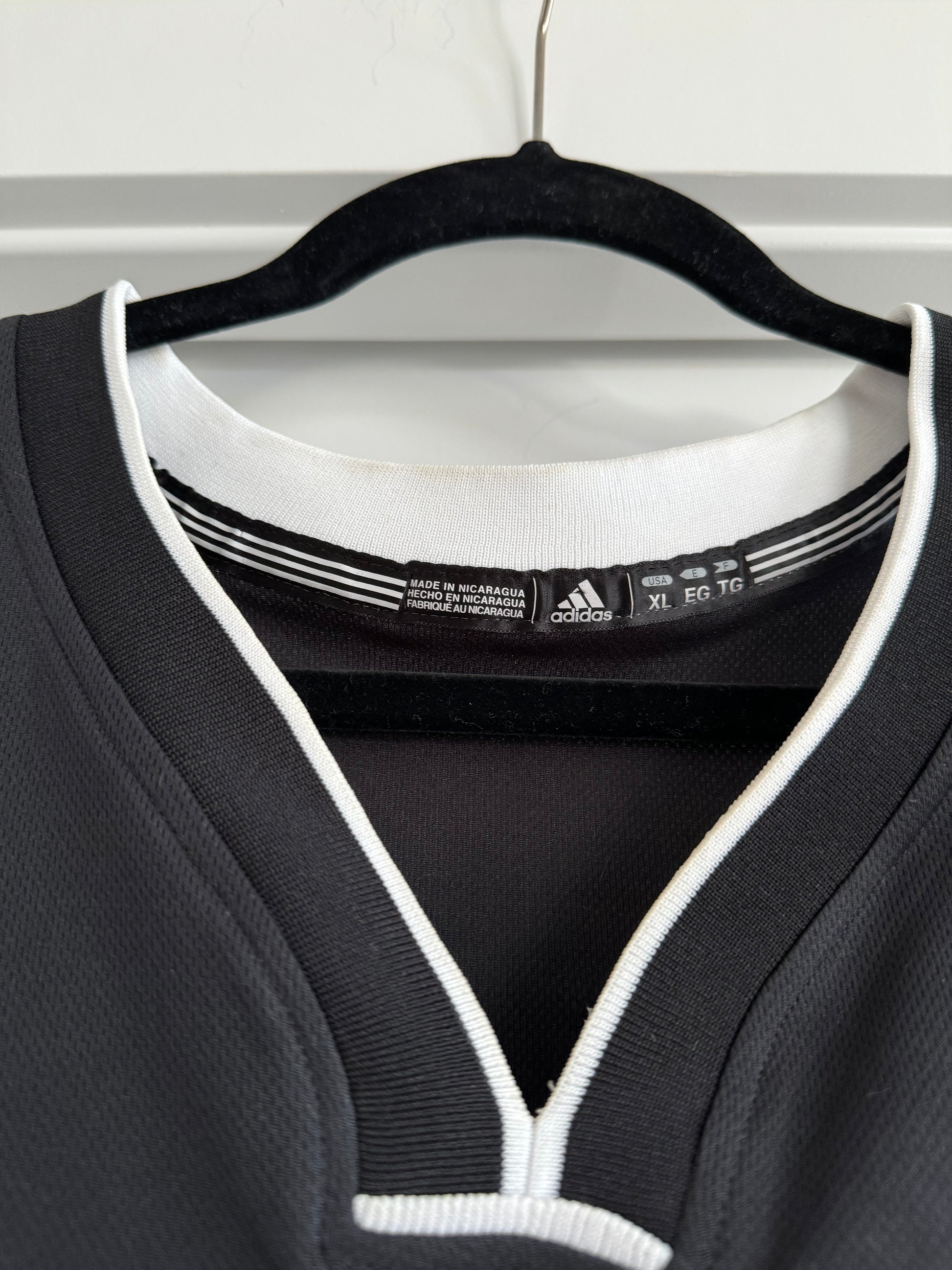 This is a tough to find DWayne Wade Adidas Swingman Black out XL.