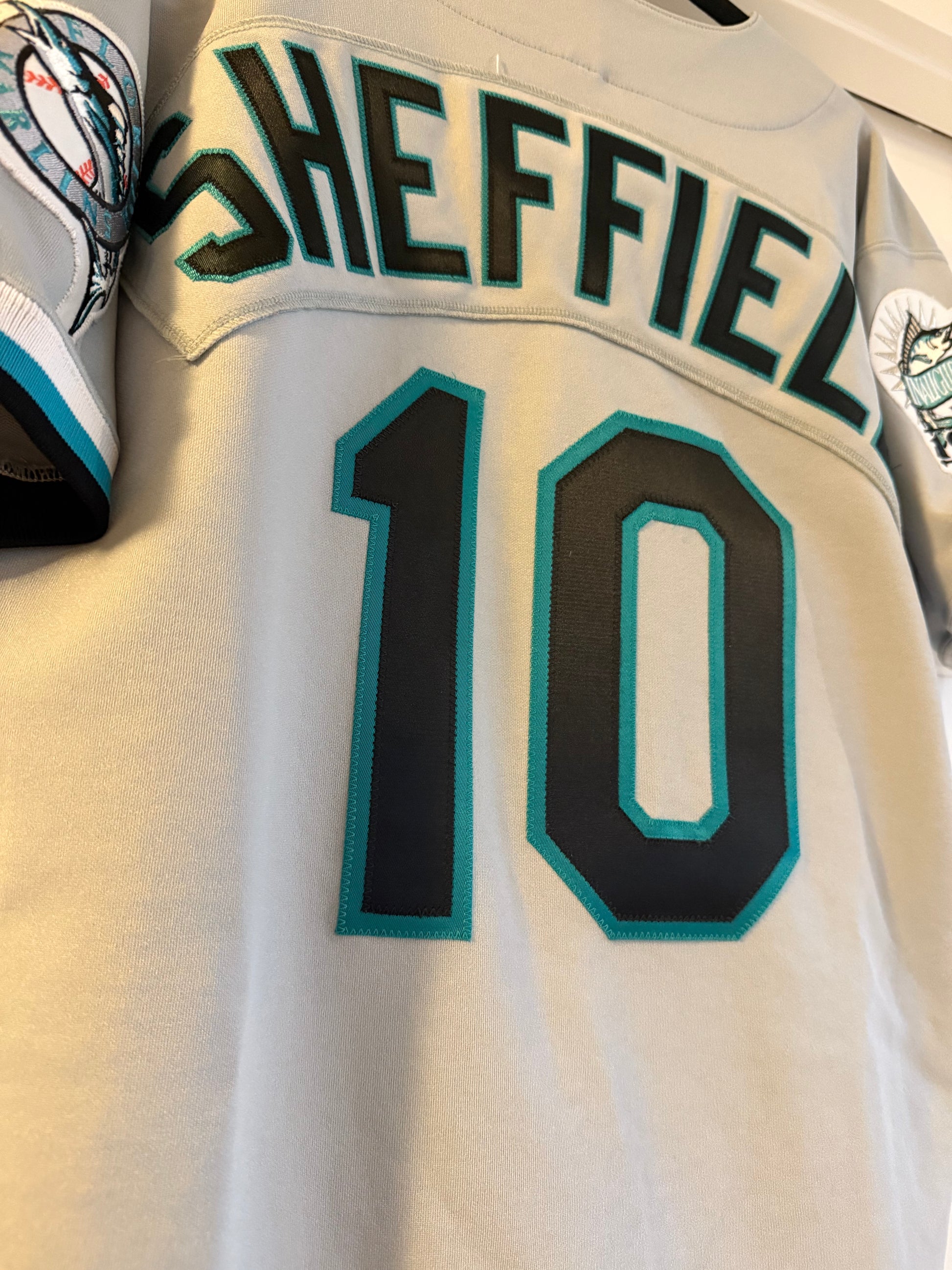 Gary Sheffield probably a top 5 Marlin of all time, and this is an iconic uniform in the franchise’s history. Arguably and in our opinion the best one.