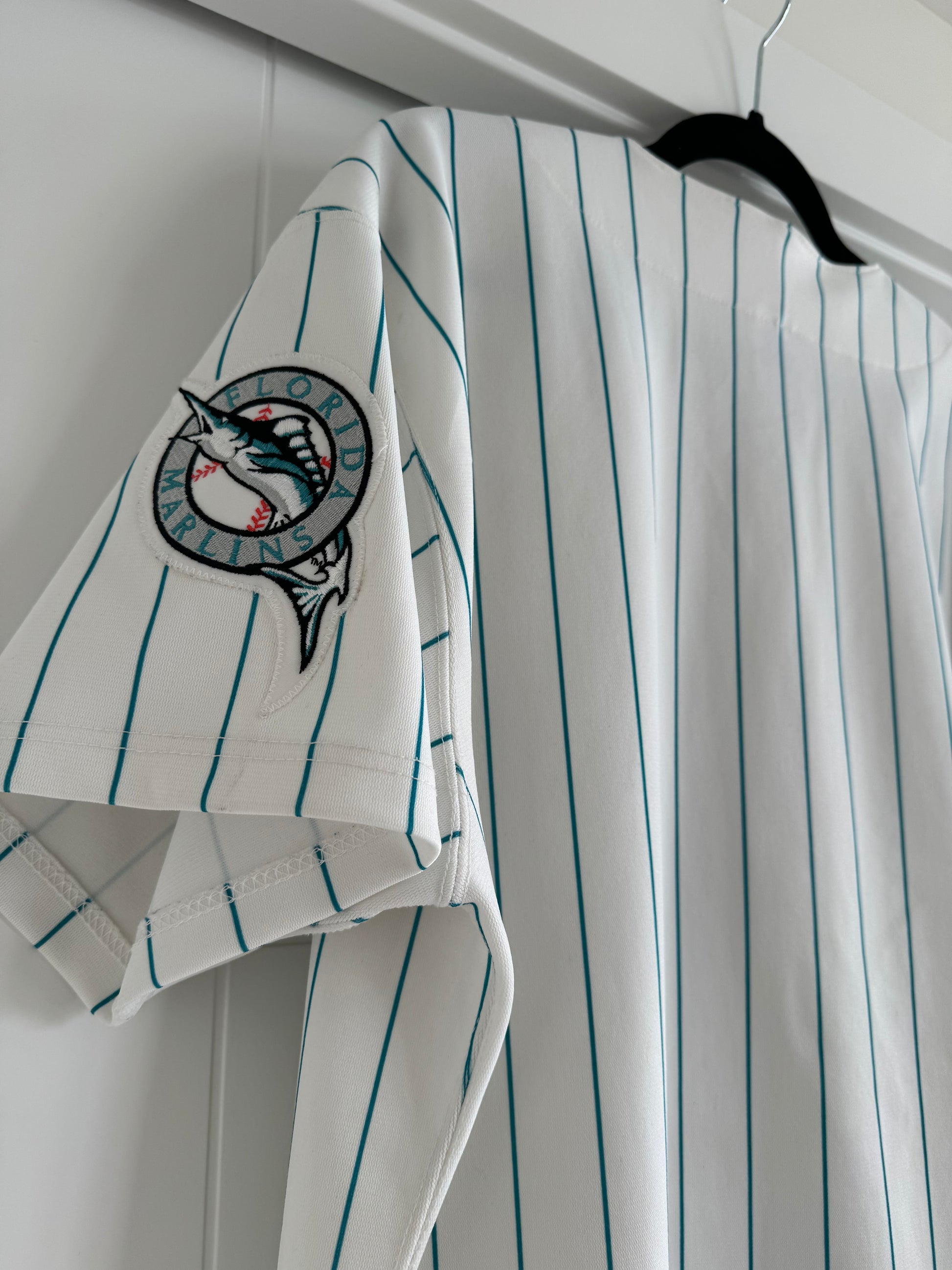 In our opinion, the second most beautiful home jersey in Marlins history. The Vest version is probably nicer, but this one comes very close.